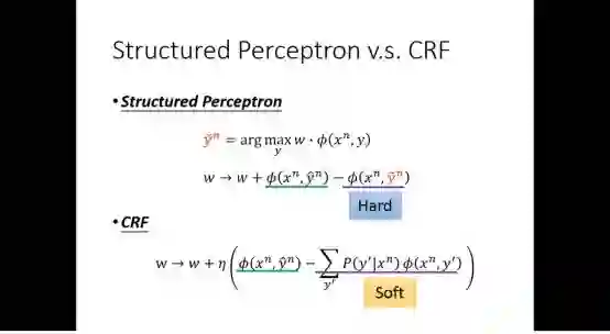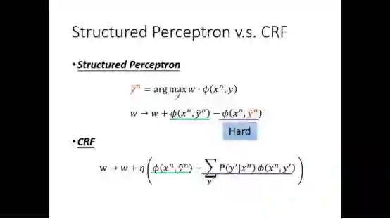 它们的区别通俗来说,CRF是取所有y’过来加权减去,structured perceptron是取几率最大的y过来减