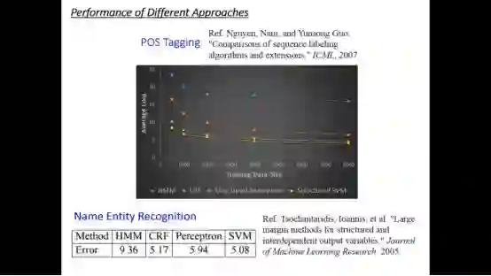 我们可以看到采用不同的方法解决POS Tagging问题得到的实验结果也会不一样