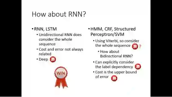 我们将RNN和HMM、CRF等一系列方法比较,各有优缺点,但最终是RNN效果更好
