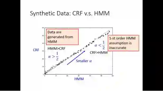从以上的讨论我们可以看出CRF和HMM的区别。HMM是根据统计来的,而CRF不在乎这个几率,它做的事是让出现在训练集的数据出现的几率更大