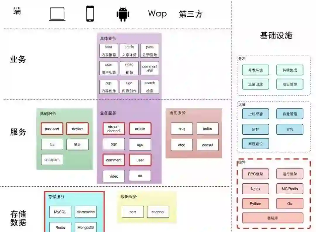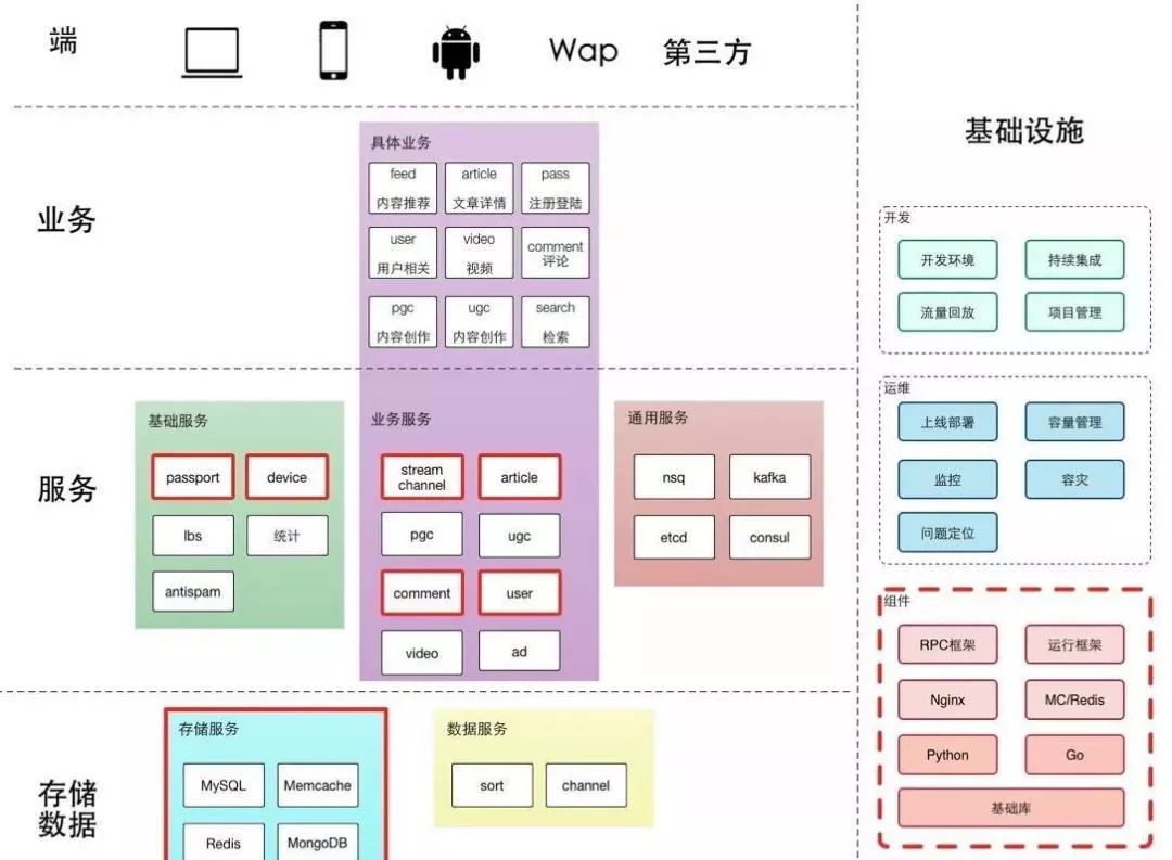 系统的分层比较典型。重点在基础设施,希望通过基础设施提高快速迭代、容灾和一系列的工作,希望各个业务团队能更快做业务上的迭代以及架构上的调整。