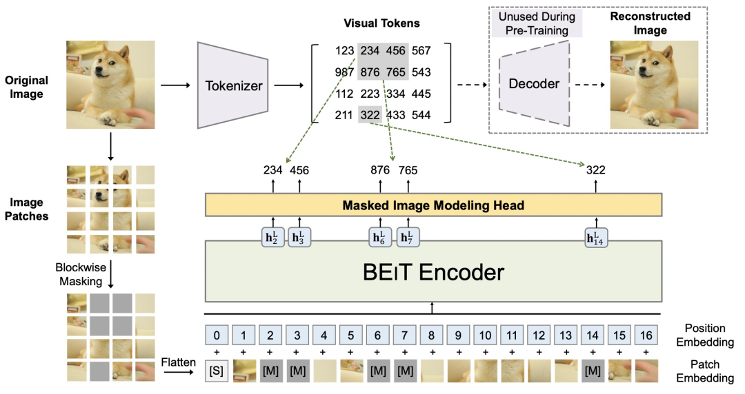 BEIT主要分为dVAE和基于Vision Transformer的MIM(Masked Image Modeling)两个部分