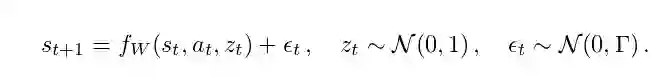 在这个模型下,输入噪声变量z_t可以通过f_W以复杂的方式进行变换,以在s_t + 1中产生任意的随机模式来作为s_t和a_t的函数。