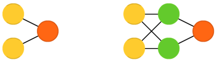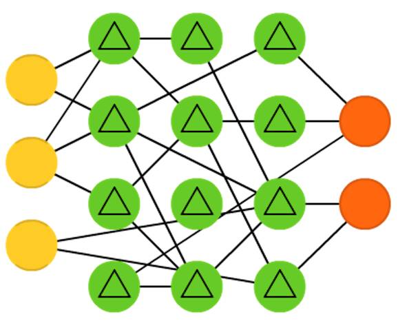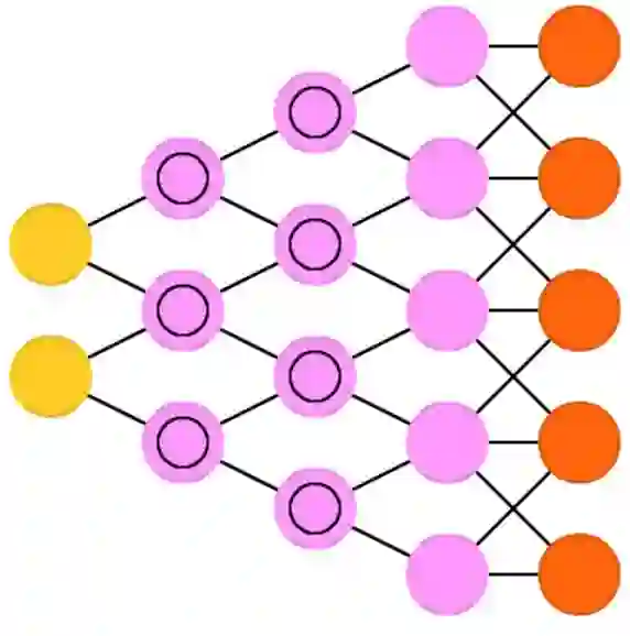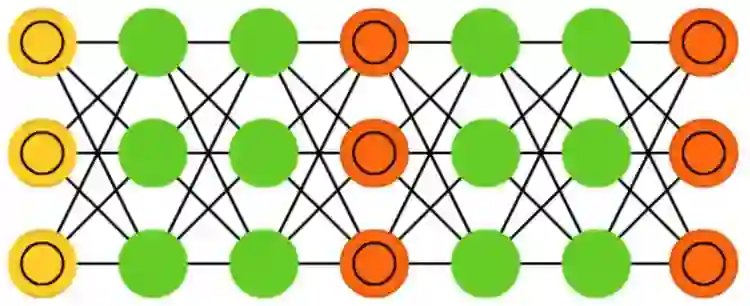 相对于单层感知器,前馈神经网络包含输入层、隐藏层和输出层。这一类网络通常使用反向传播算法(Backpropagation)进行训练,由于网络具有隐藏神经元,理论上可以对输入和输出之间的关系进行建模。但实际上该网络的应用是很有限的,通常要将它们与其他网络结合形成新的网络。