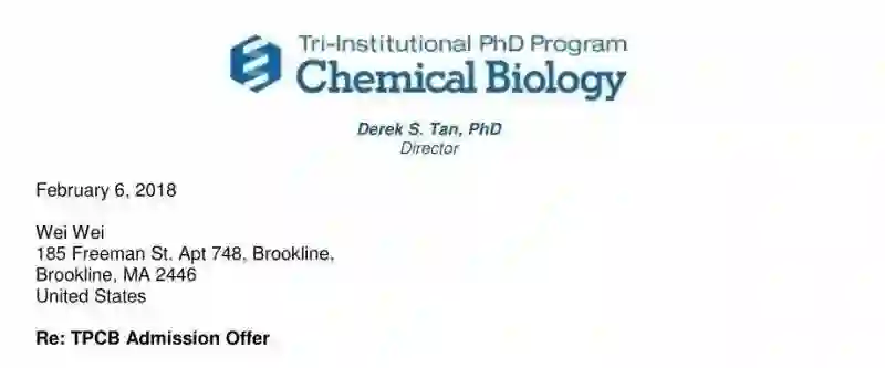 纽约三校联合化学生物学博士项目(TPCB)offer(注:该项目由康奈尔大学、洛克菲勒大学和美国权威的纪念斯隆-凯特林癌症中心合办)