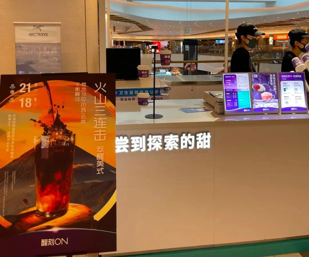 昨日,一家名为“醒刻ON”的咖啡店在成都合景魔方购物中心开出。这已是这家咖啡新品牌在成都落地的第二家店。