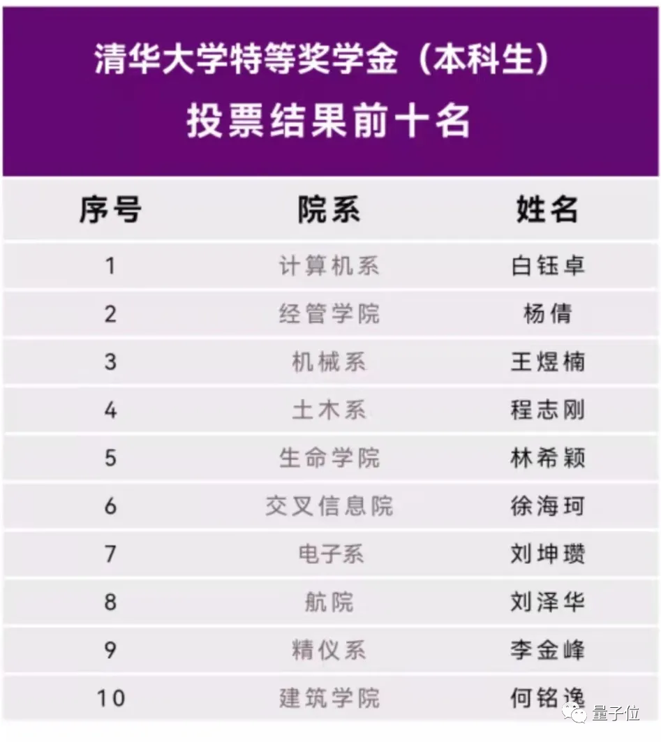 一年一度的清华本科生特等奖学金答辩完毕,投票结果出炉。