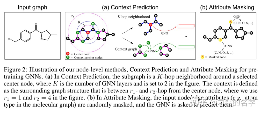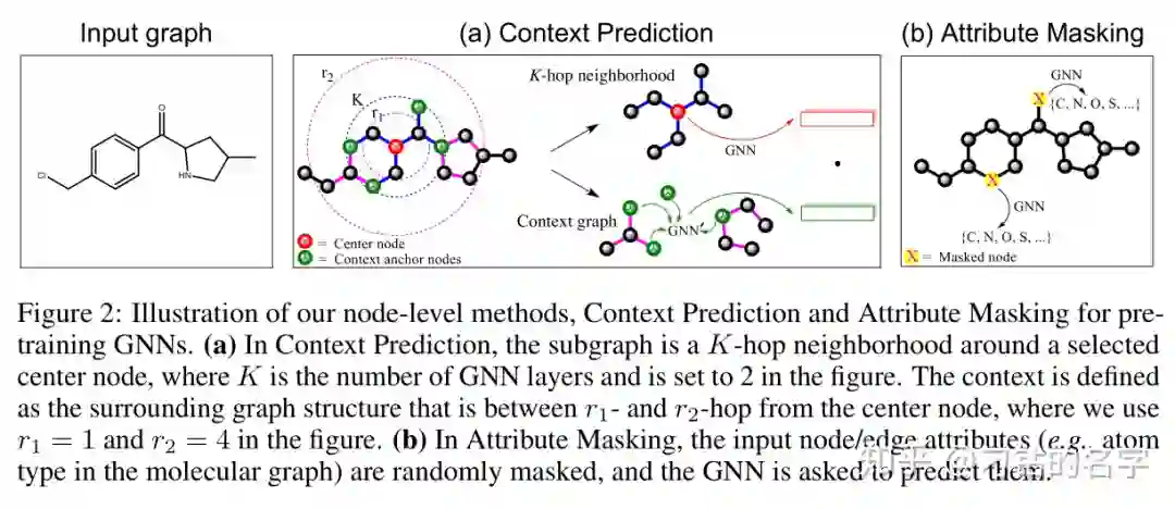 3.2.1 节点级预训练:使用无标签的数据,自监督学习特定领域的知识/规则,包括上下文预测和属性遮掩
