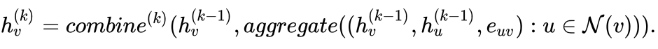 GNNs:对每个节点,记为目标节点 v,通过聚合 v 的所有邻居节点和相应的边的表示,迭代生成 v 的表示向量。