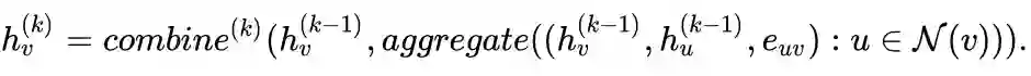 其中 为节点 v 的第 k 词迭代得到的表示向量, 表示节点 v 的邻居集合, .
