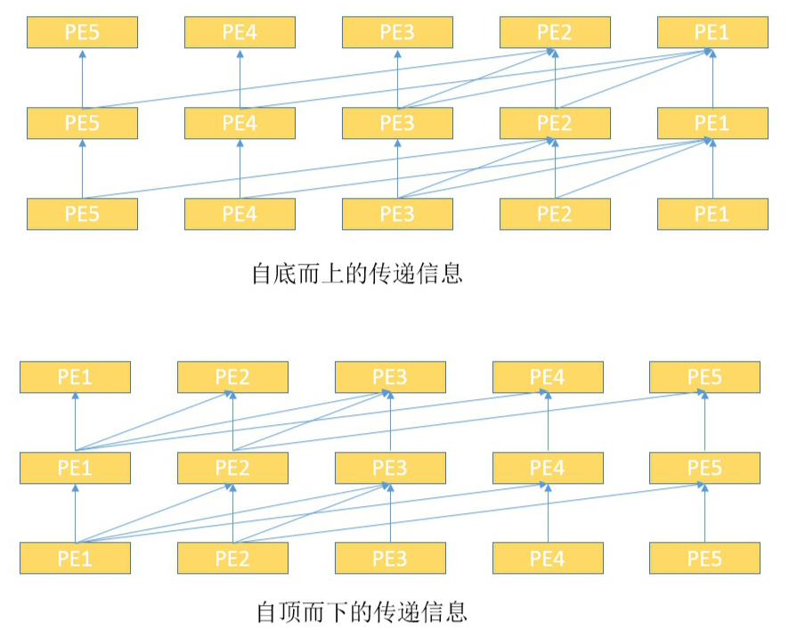 ▲ 根据示例图 1 中的 mask 矩阵,我们需要将位置编码顺序逆转,然后 attention 时使用 mask,可以看到这是一种自回归的编码方式,辅以层次编码,自底向上的扫描网络;同理,可以将 mask 转置,采用自顶而下的方式扫描网络。