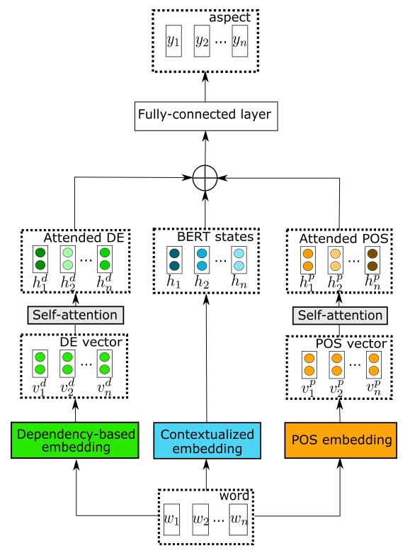 来自伍伦贡大学的两位研究者提出,从流程上看,对象级情感分析任务(Aspect-based Sentiment Analysis,ABSA)其实包括两个部分,即对象抽取和情感分类;既有的研究大都将二者分离开,隐藏在句法结构中的信息就无法被充分利用。针对这个问题,本文构建了一种端到端的对象级情感分析方法,可以充分利用语法信息,并使用自注意力机制充分挖掘句法结构。在操作上,本文使用了part-of-speech表示、依存表示和上下文嵌入(如BERT,RoBERTa),还使用了句法距离来降低非相关单词的影响力。