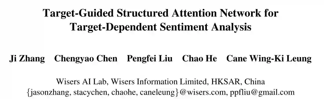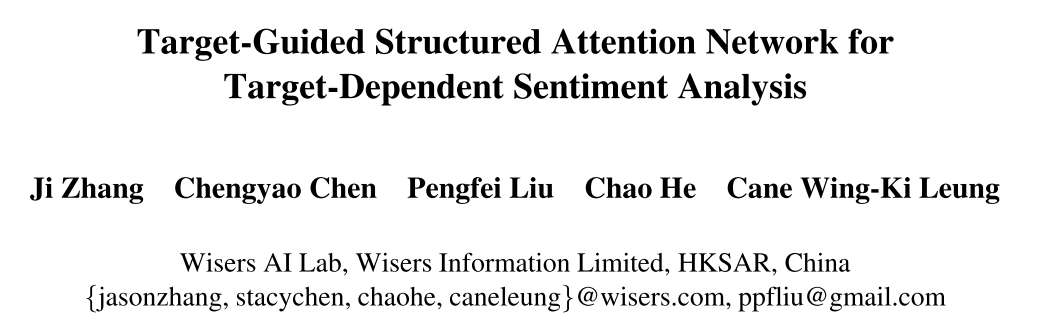 [3] Zhang, Ji, et al. "Target-Guided Structured Attention Network for Target-Dependent Sentiment Analysis." Transactions of the Association for Computational Linguistics 8 (2020): 172-182.
