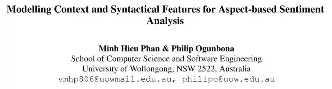 [2] Phan, Minh Hieu, and Philip O. Ogunbona. "Modelling Context and Syntactical Features for Aspect-based Sentiment Analysis." Proceedings of the 58th Annual Meeting of the Association for Computational Linguistics. 2020.