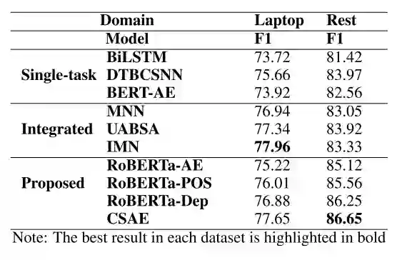 在SemEval-2015 Task12和SemEval-2016 Task5的数据集上,本文所用的模型都得到了明显优于其他模型的结果。