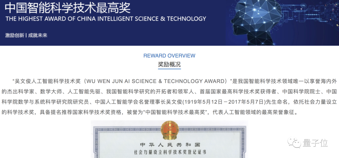 奖项旨在奖励智能科学技术领域取得重大突破,做出卓著贡献的科技工作者和管理者。