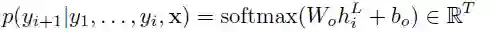 我们还在大小为 f 的嵌入和大小为 2d 的卷积输出之间的映射中添加了线性映射。最后,我们计算了 T 个可能的下一目标元素 yi+1 的分布: