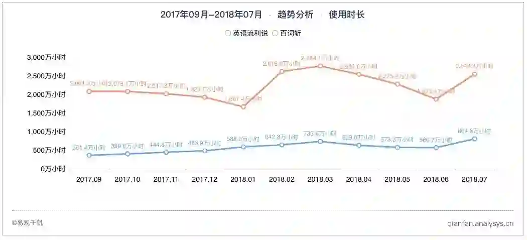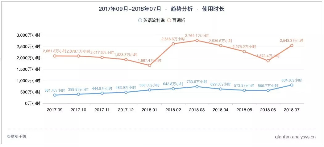 根据易观千帆的数据显示,2018年7月外语学习应用TOP10榜单中,百词斩以817.92万月活跃用户稳坐头把交椅,并保持7.69%的环比增速。