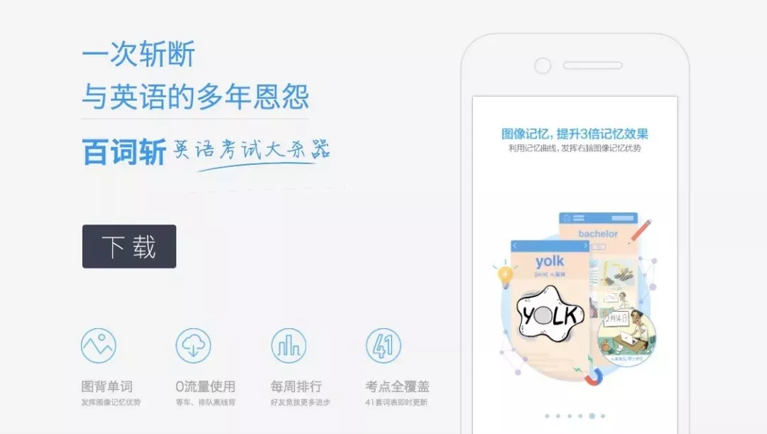 自称“英语考试大杀器”的百词斩,若只在单词背诵上下功夫未免过于单调,为了证明其行业野心,花样百出的产品功能迭代也让人应接不暇。单词锁屏、单词tv、单词电台、单词PK、实景外教直播……只有你想不到的,没有它不敢玩的。百词斩精准抓住用户痛点,凭借个性化定位和丰富多样的产品功能,在众多英语学习APP中突出重围,顺利C位出道。