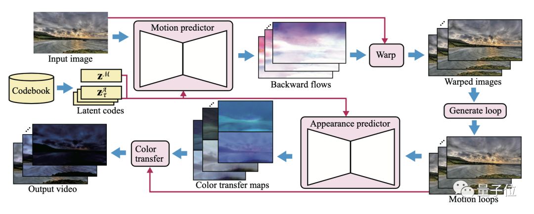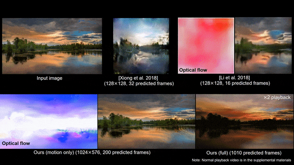 这些流使输入图像变形,合成添加了运动的图像,然后将它们转换为运动循环。