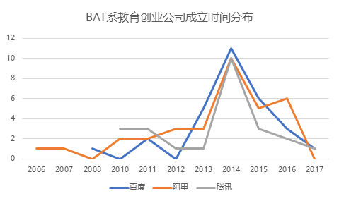 通过研究 BAT 系教育公司的成立时间、细分行业以及所在地,我们发现——