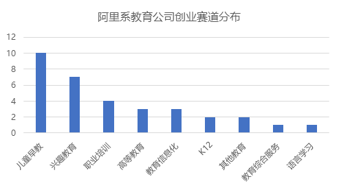 阿里系的互联网金融公司共 33 家,主要集中在儿童早教、兴趣教育、职业培训、高等教育、教育信息化等领域。其中,儿童早教领域的创业公司多达 10 家,如家校信息沟通平台「贝聊」、儿童传统文化教育品牌「婷婷姐姐」等;兴趣教育和职业培训领域的创业公司分别有 7 家和 4 家,其中不乏「小马学院」「淘课网」等知名平台。