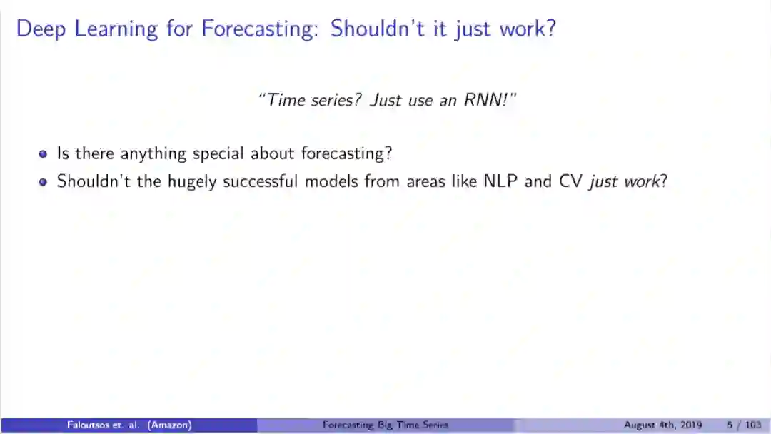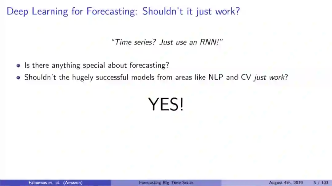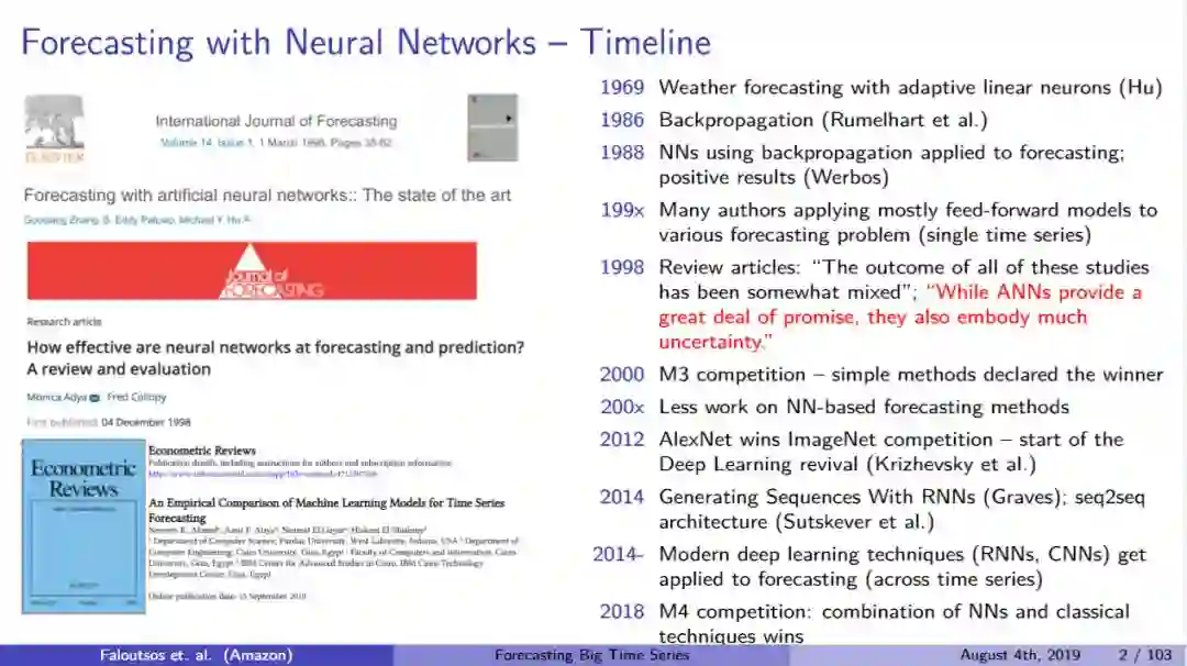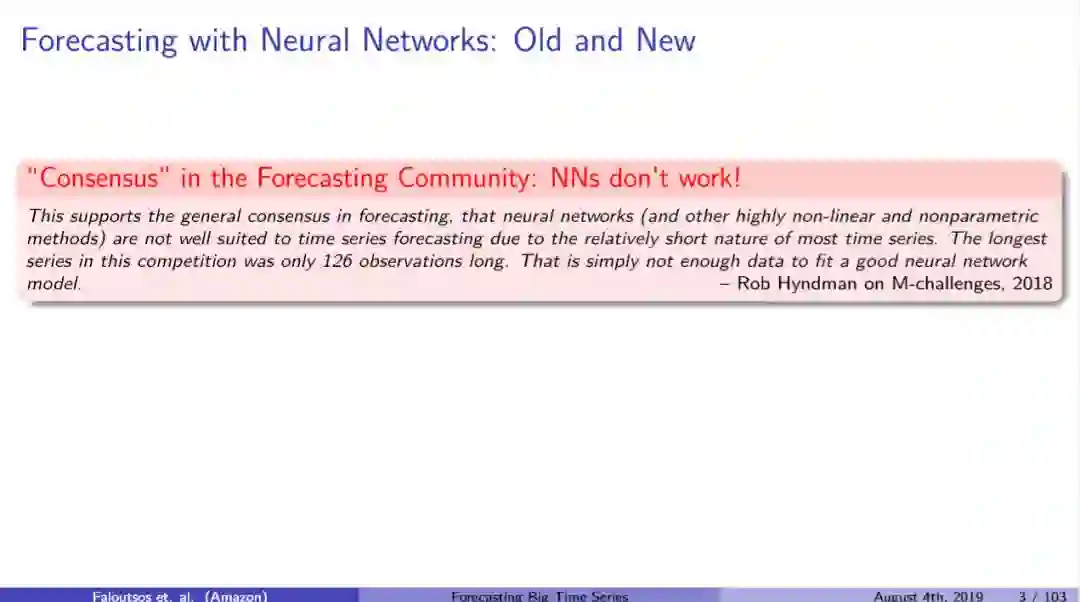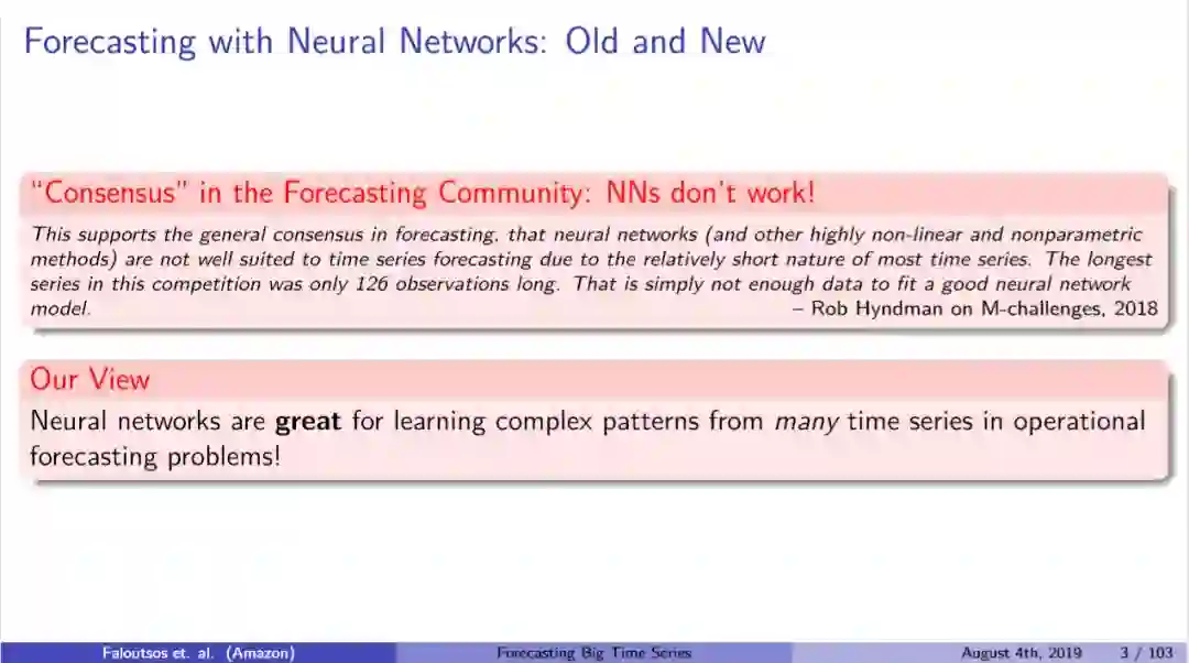 本教程的目的是,简要直观地概述可用于解决大规模预测问题的重要方法和工具。我们回顾了三个相关领域的最新技术:(1)经典的时间序列模型,(2)张量分析,(3)深度学习预测。此外,我们讨论了现实中,构建大规模预测系统的关键任务,包括数据集成,特征生成,回测框架,错误跟踪和分析等。本教程重点是提供方法和实际问题的直观概述,我们将通过案例研究和Jupyter进行说明。