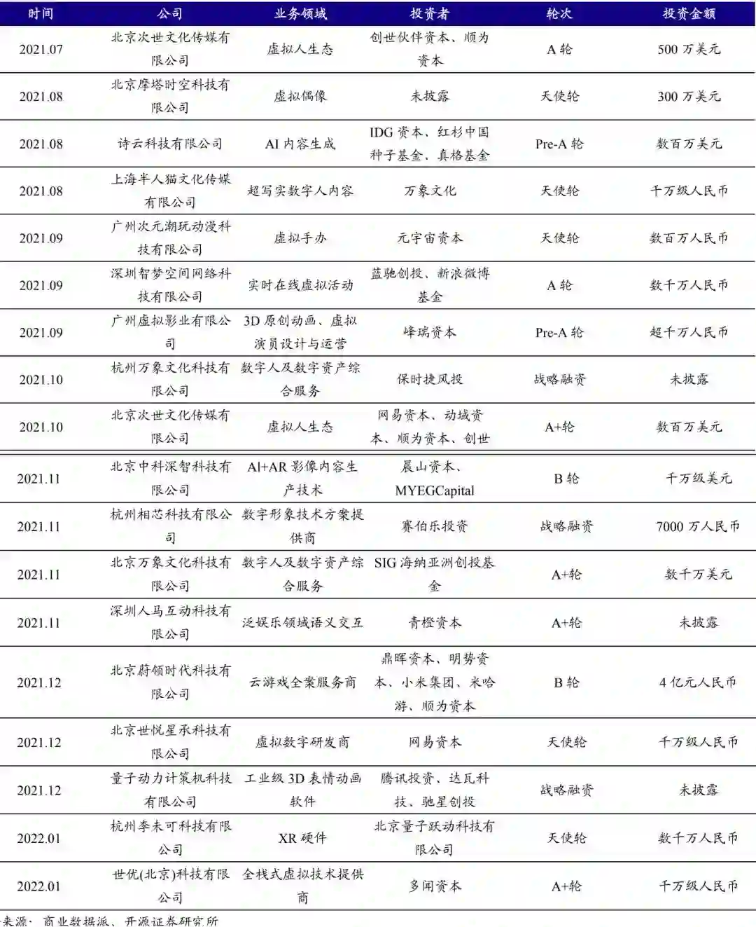 2022 开年还不到一个月,虚拟人领域近百起融资已经累计超 4 亿元。