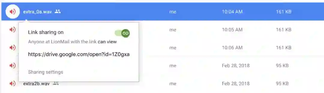 首先把上面三个音频文件放在 Google Drive 上,并通过右键选择「Get Sharable Link」拿到对应的 id(链接中 id= 后面的部分)。