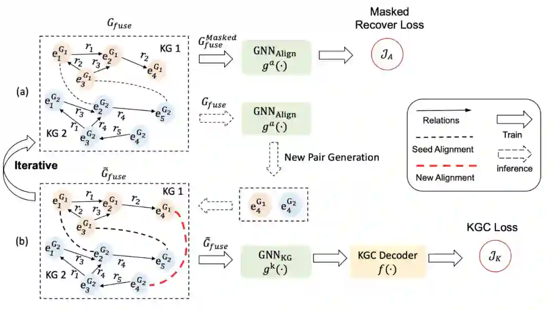 2. seed alignment 作为知识传播的监督信号,往往很稀疏, 因为它需要进行跨语言昂贵的人工标注。为缓解稀疏性问题,已有的工作提出在模型训练过程中根据实体的向量表征相似性来生成新的对齐实体对(alignment)。新生成的实体对可以增加 KG 之间的互联互通以促进知识的传播。然而,这些方法往往属于无监习,因此生成的实体对可能存在噪声。