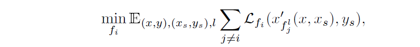 我们要求每个子模型面对其他子模型提取的非鲁棒特征图片时,输出这一图片视觉上正确的标签,即原图x_s的标签y_s。