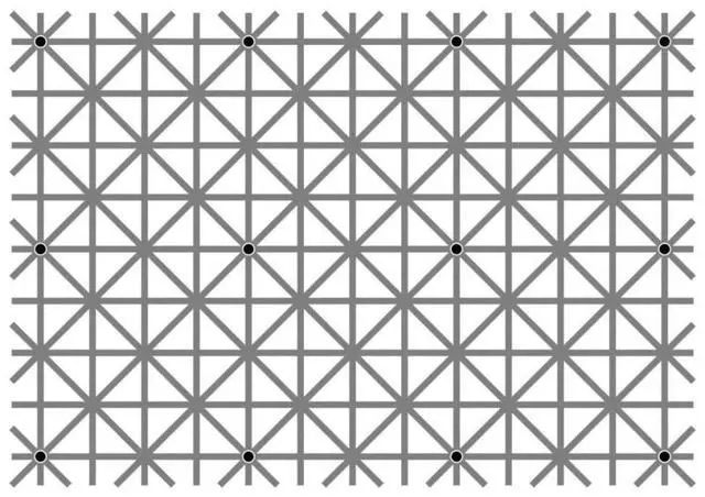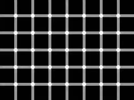 这张图被称为“Ninio熄灭错觉”。事实上,它是另外一种更有名的视错觉——闪光栅格错觉——几经演变的产物。这些格子上的视错觉作品最早可以追溯到一百多年前,在格子的交叉点上,上演着一出出虚幻缥缈、闪烁不定甚至干脆消失的魔幻大戏。而这些错觉现象,也透露着人类视觉感知的秘密。