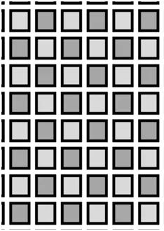 但是,这神秘莫测的小暗点也并不总是那么顽强。如果把黑白图换成两种亮度相同的彩色,错觉就会消失了: