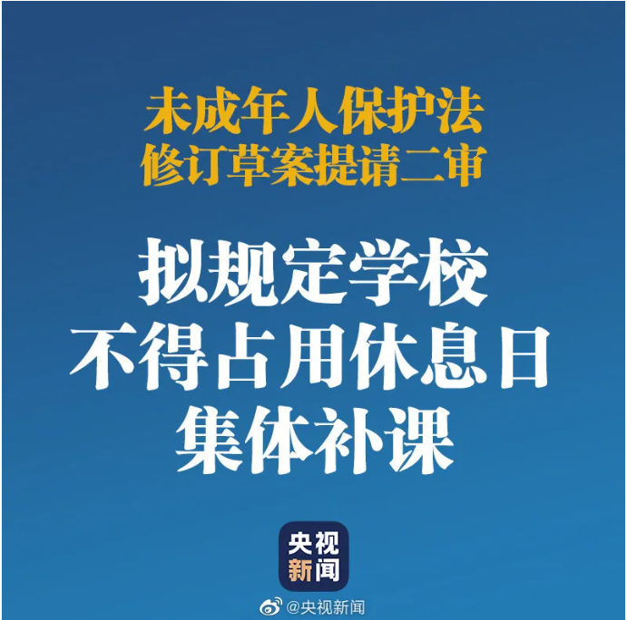 未成年人保护法修订草案二审,拟规定学校不得在休息日集体补课