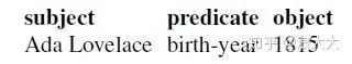 这个三元组可以用来回答文本问题,比如‘When was Ada Lovelace born?’ or ‘Who was born in 1815?'。在这个范例中,回答问题需要从文本字符串映射,比如”When was ... born”在知识基础上的规范关系,如出生年份。我们可以把这个任务概括为: