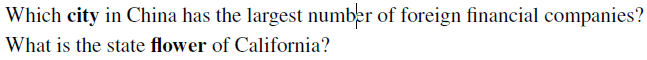 然而,大多数的问题分类器都是基于监督学习的,它们都是在手工标注答案类型的问题数据库上训练的。可以使用基于特征的方法或神经方法。基于特征的方法依赖于问题中的单词及其嵌入、每个单词的词性以及问题中的命名实体。通常,问题中的一个单词提供关于答案类型的额外信息,并将其标识用作一个特性。这个词有时被称为答案类型词或问题词头词,可以定义为问题后的第一个NP词头词;在下面的例子中,标题词用黑体字表示