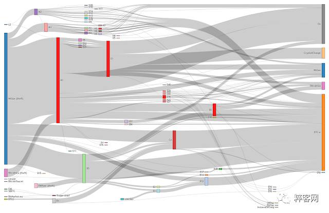 Mt. Gox 被盗比特币流向的汇总图(图片源自:WizSec 的博客)