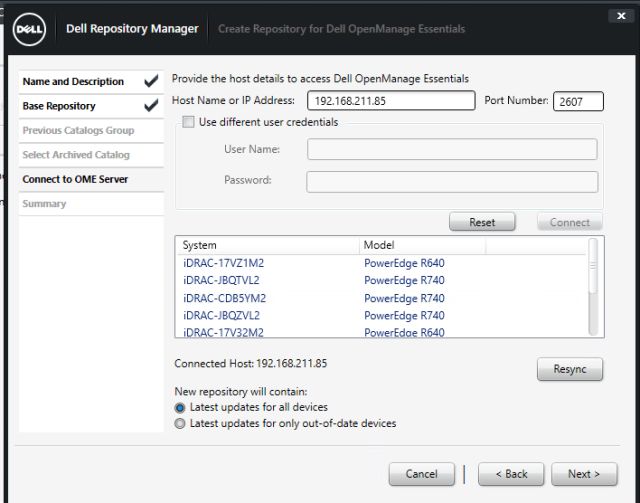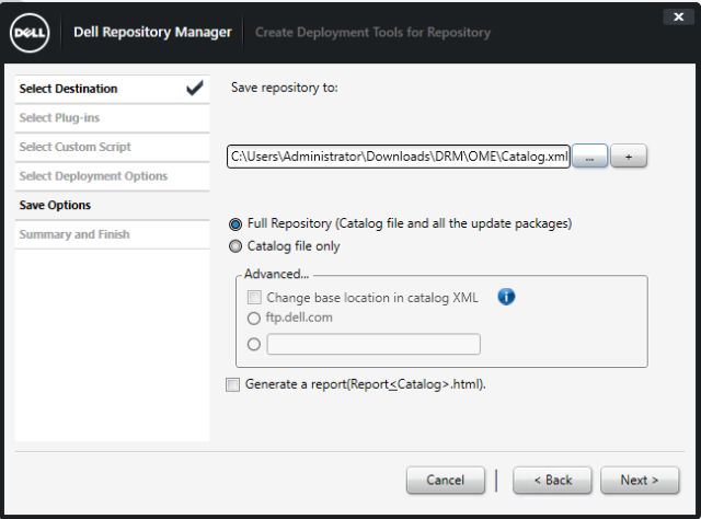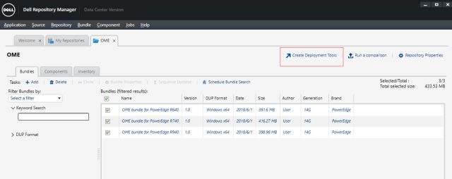 创建了一个属于OME的repository,例子中有包换R640/R740/R940的三种机型。勾选所有的bundles,点击Create Deployment Tools,用来本地目录源: