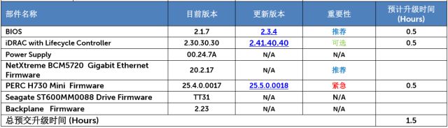 ② 每台服务器给出以下的建议,并告知建议使用Dell EMC Repository manager(DRM)协助升级。