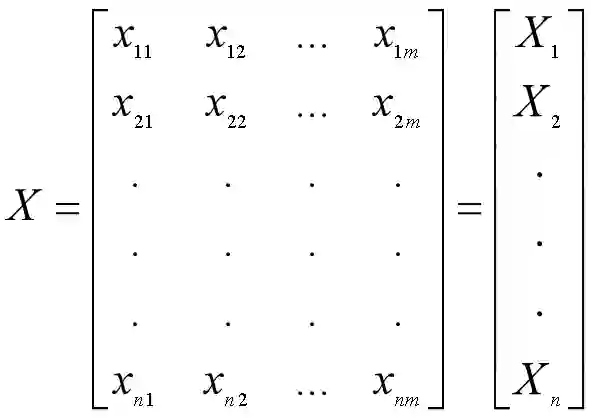 假定我们有m个观测值,每个观测值有n个特征(变量),那么将其排成n行m列的矩阵,并且每一行都减去该行的均值,得到矩阵X(减去均值是为了下面方便求方差和协方差)。