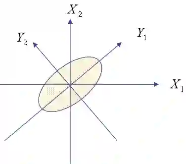 因此,如果让坐标轴和椭圆的长短轴平行或重合,那么长轴代表的变量,描述了数据的主要变化,而代表短轴的变量,描述的是数据的次要变化。