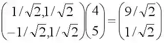 我们把两个坐标基按行放置,作为变换矩阵,乘以原坐标,也就是对原坐标进行线性组合,可以得到该点在新坐标系下的坐标。