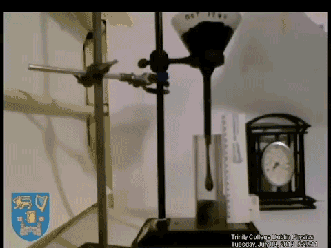 这个沥青滴漏实验的开创者是该校的第一位物理学教授托马斯·帕内尔(Thomas Parnell),他想借此实验向学生证明,在冷却状态下很容易被锤子砸碎的沥青(一种黑焦油馏分)也可以像液体一样流经漏斗,从底部滴出。最后帕内尔成功了,每隔 6 到 20 年,就会有一滴沥青滴落,迄今为止已经滴下了 9 滴沥青,速度如此之慢,使其成为世界上最慢的滴漏。