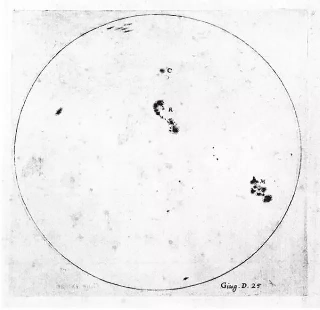 伽利略(Galileo)早在1613年绘制的太阳黑子图。