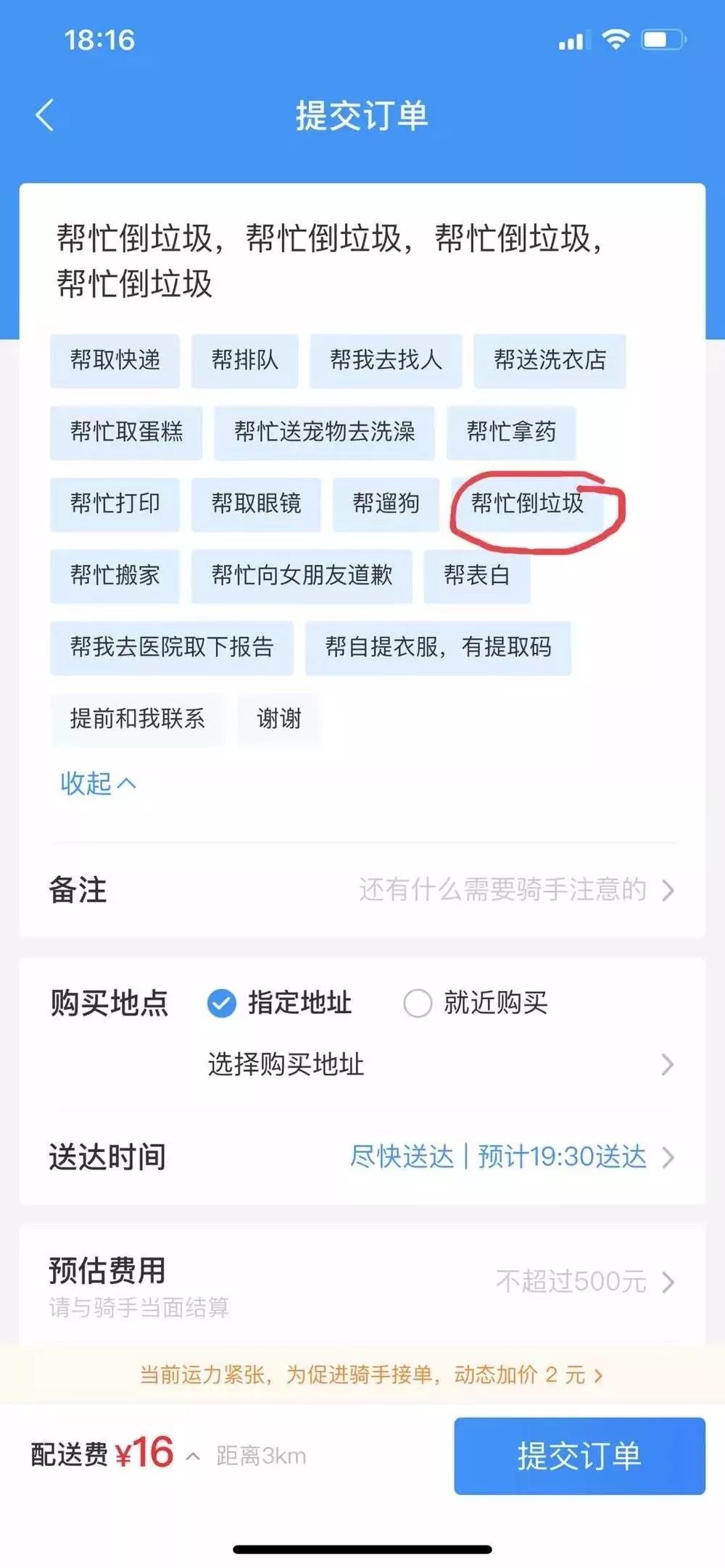 16.饿了么上线代扔垃圾服务,客户需自行分类