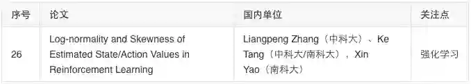 地址:https://papers.nips.cc/paper/6777-log-normality-and-skewness-of-estimated-stateaction-values-in-reinforcement-learning.pdf