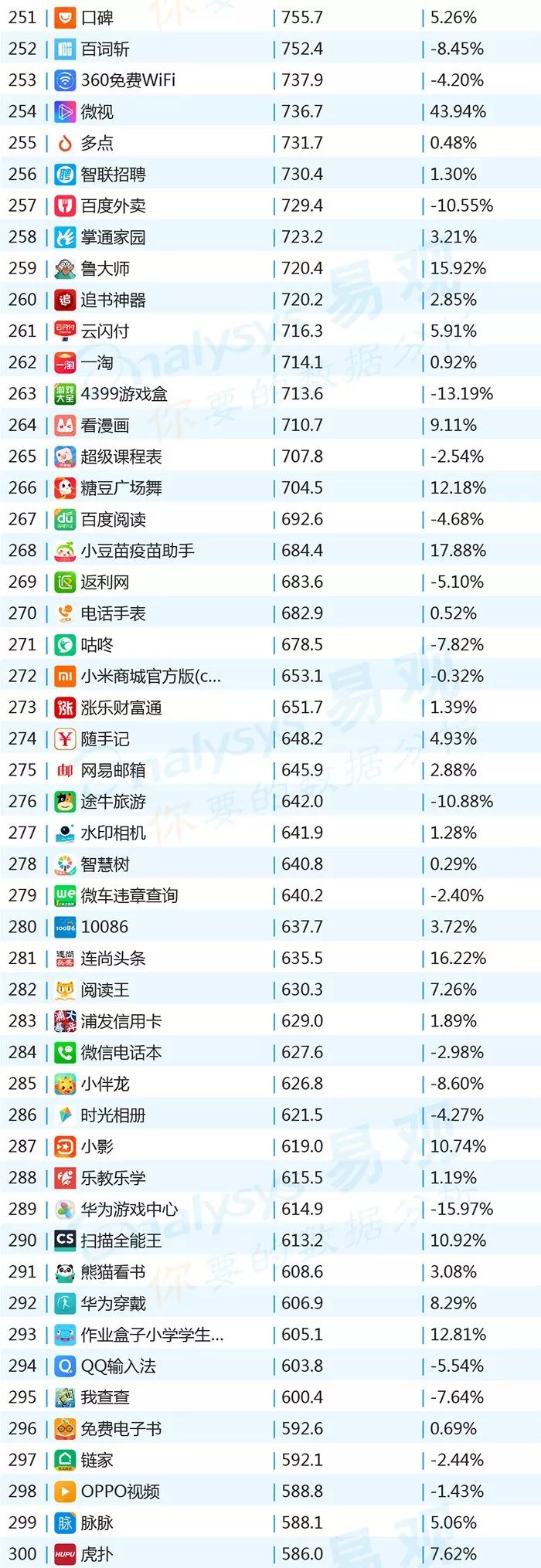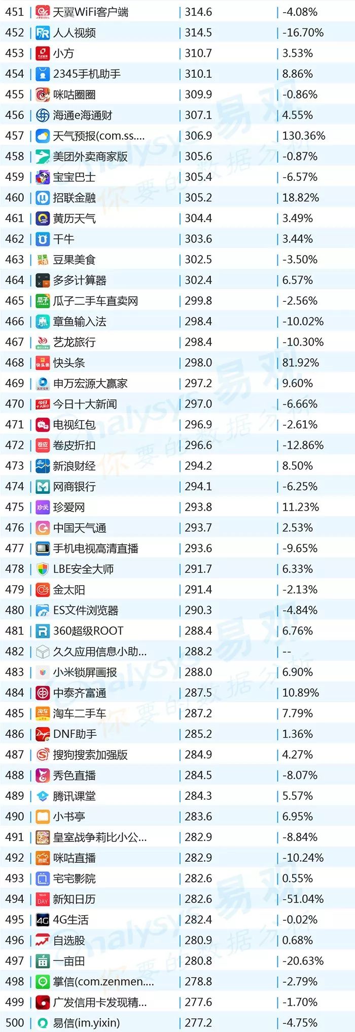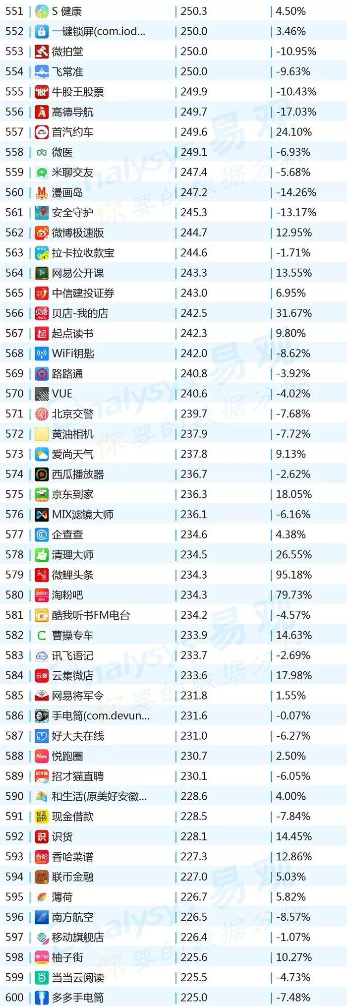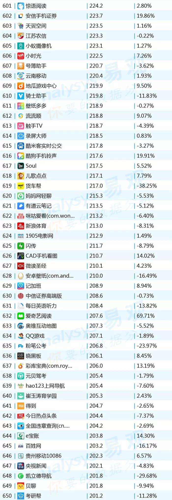 ▌增幅TOP20:上证指数上涨带动证券类用户活跃,微视联手《创造101》增势显著