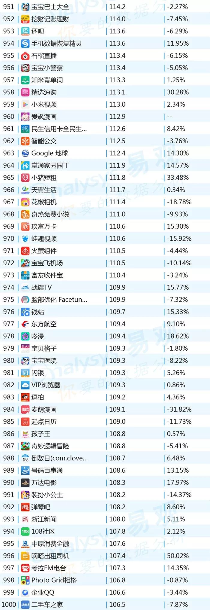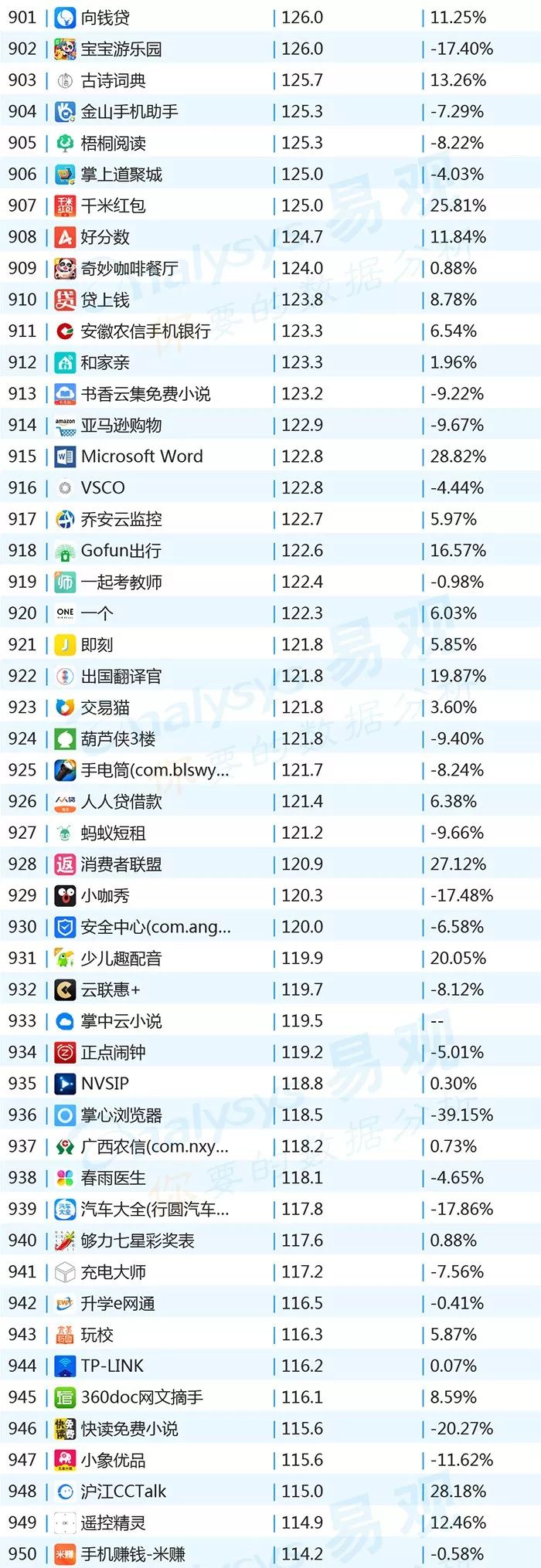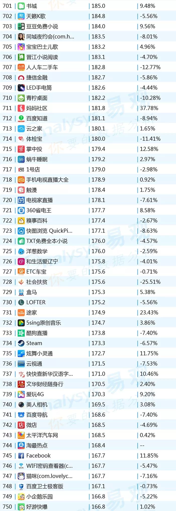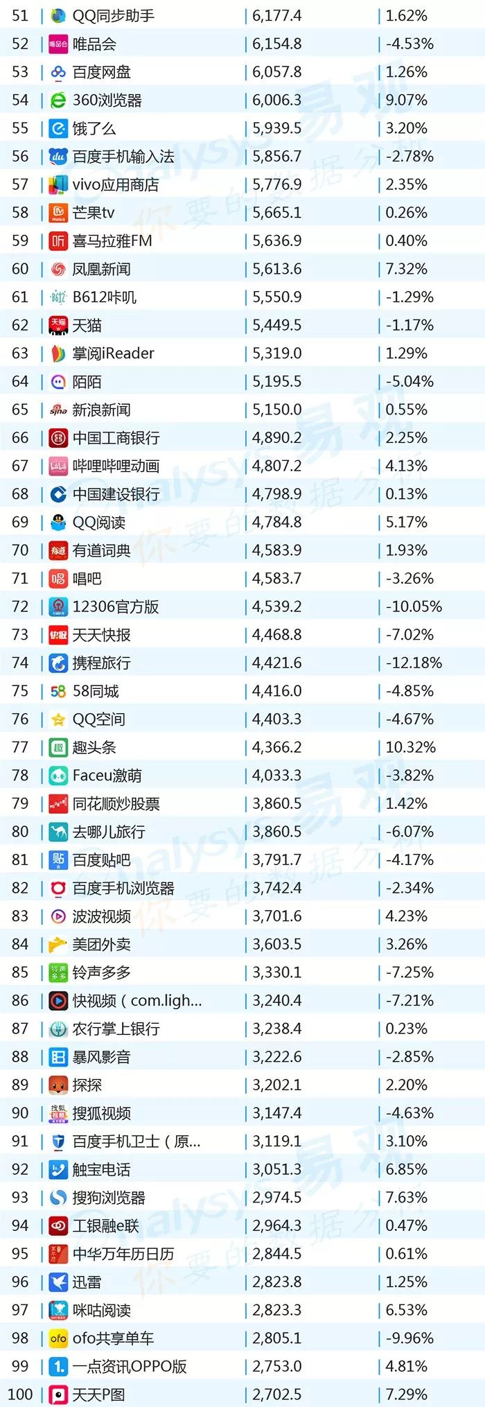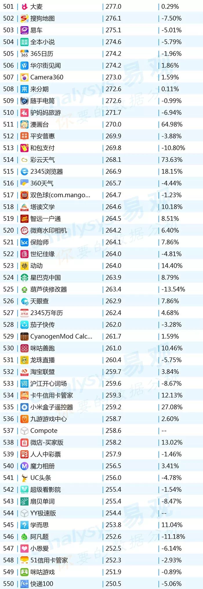 ▌增幅TOP20:上证指数上涨带动证券类用户活跃,微视联手《创造101》增势显著