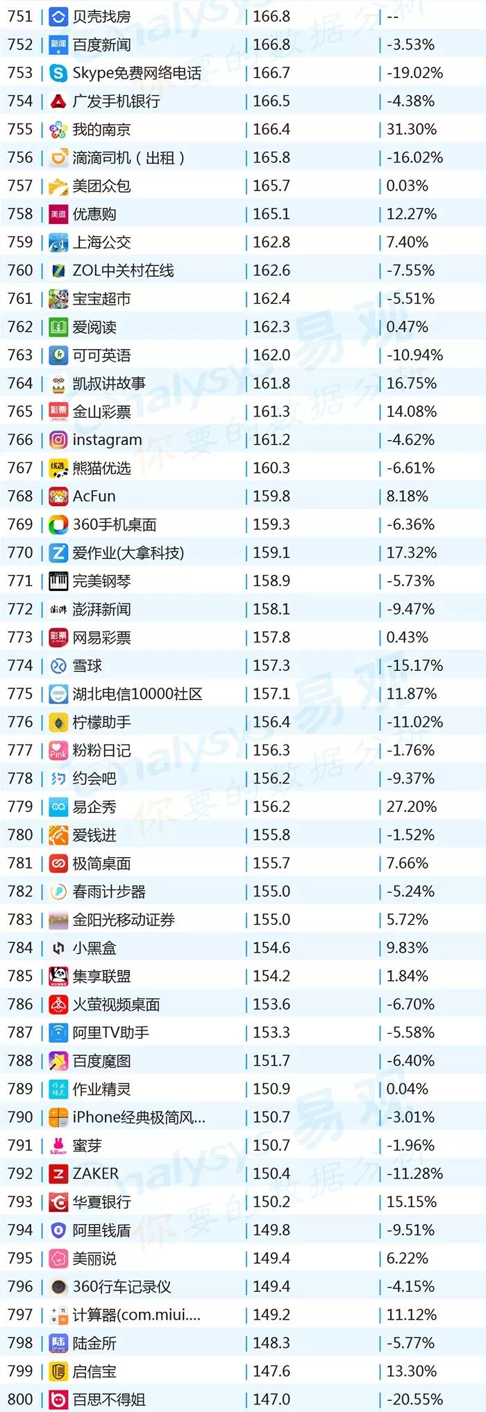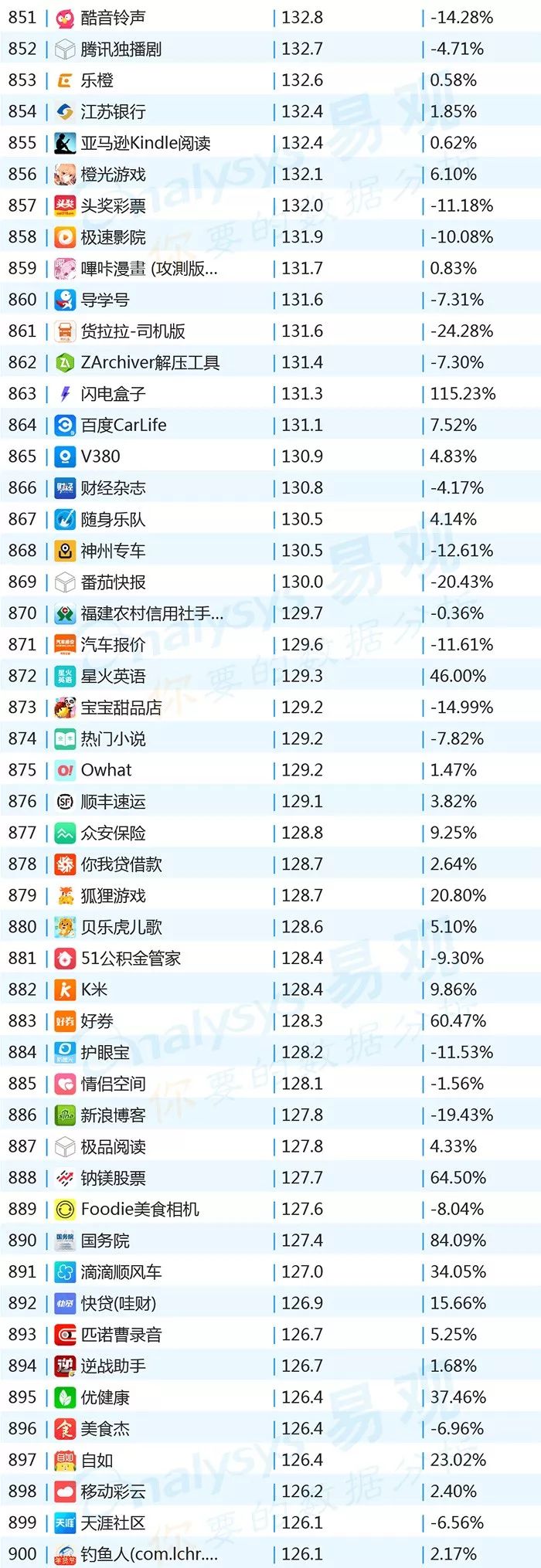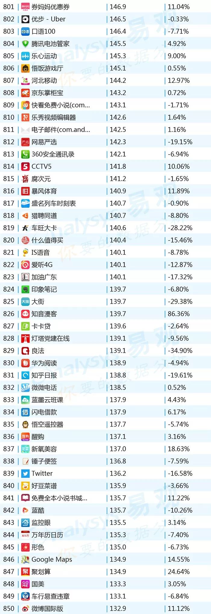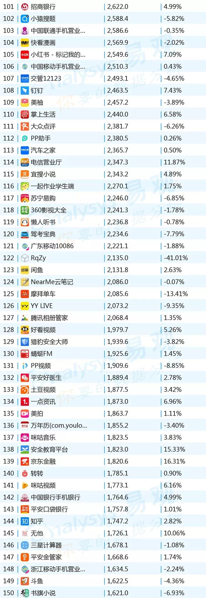 ▌增幅TOP20:上证指数上涨带动证券类用户活跃,微视联手《创造101》增势显著