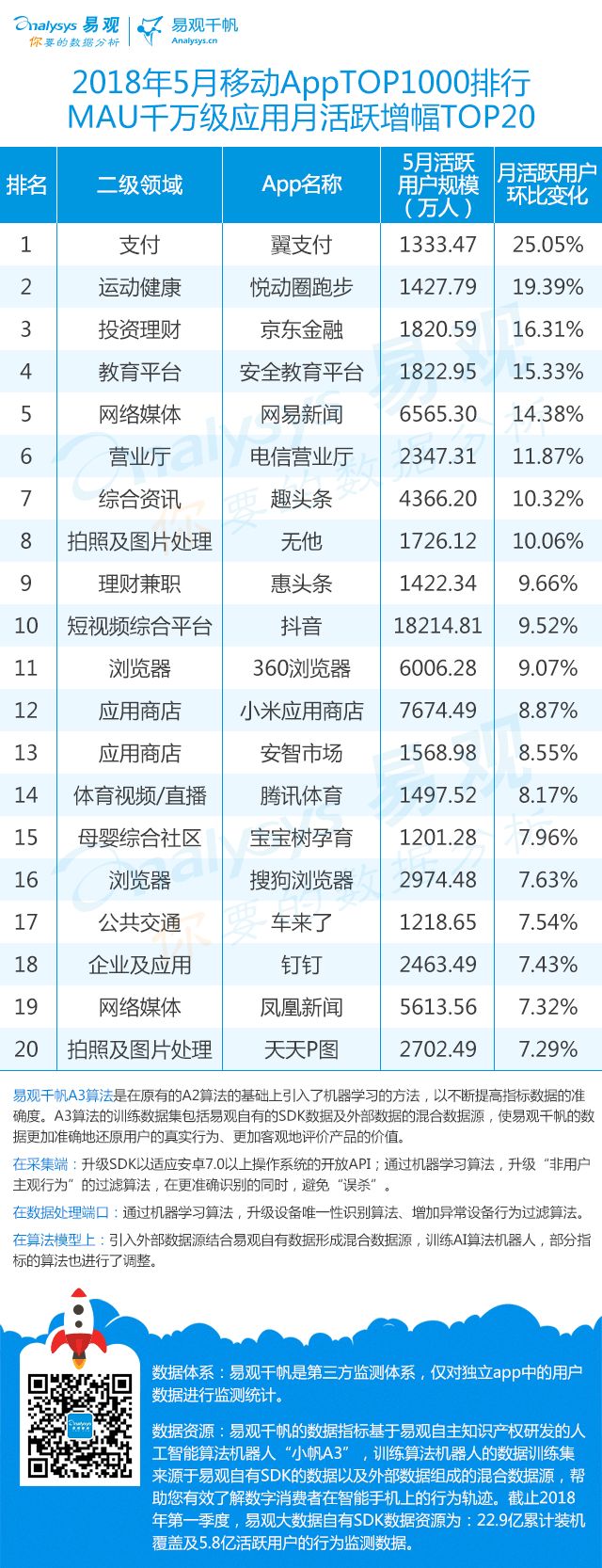 5月各领域市场瞬息万变,为拉新促活厂商使尽浑身解数各出奇招,最终成绩究竟如何?易观全新出炉2018年5月App TOP1000排行榜正式揭晓,看各家都通过什么手段提升运营效率。